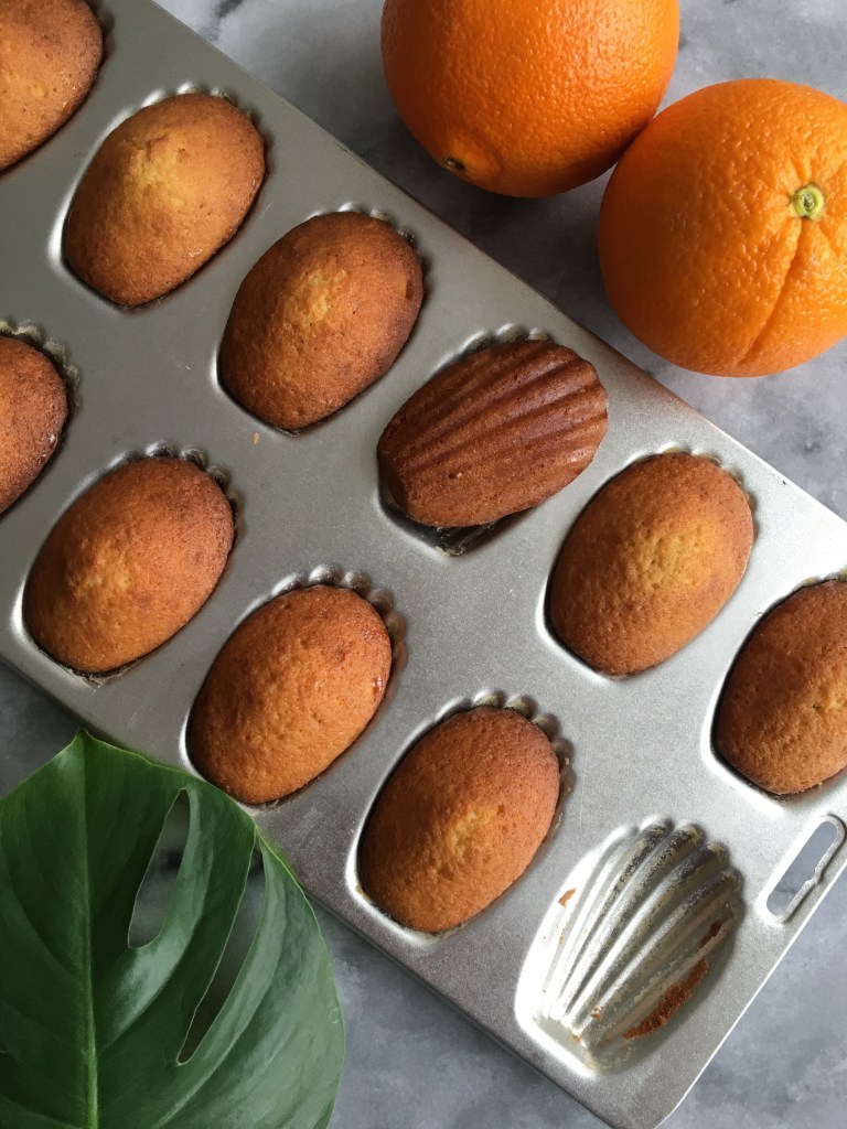 - Unmould the madelines, and brush with orange honey glaze.